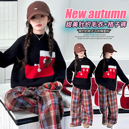 1*2下载视频“LC2523格子领结毛衣裤子套装”