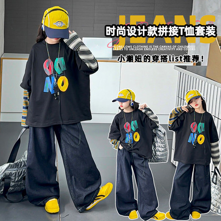 1*4下载“LC8558时尚拼接袖上衣牛仔裤套装”图片包